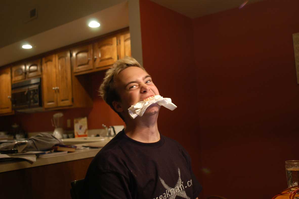 giving us crap about us making him wait, and finishing our feast, we